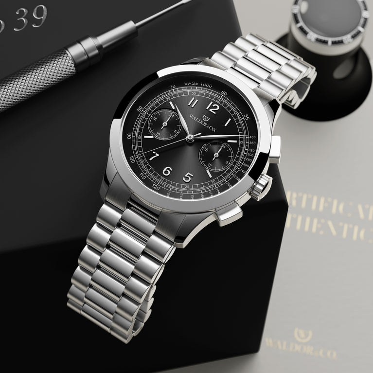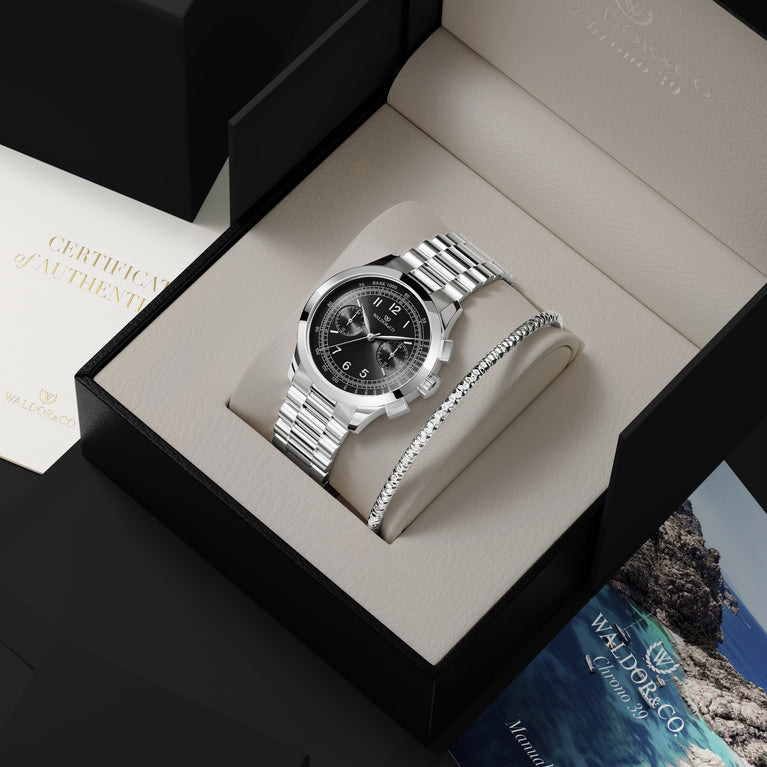 Strap: Solid strap in rhodium-plated 316L stainless steel