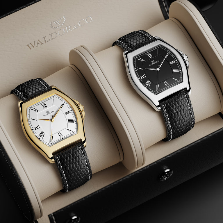 Packaging: Black leather box with certificate and manual