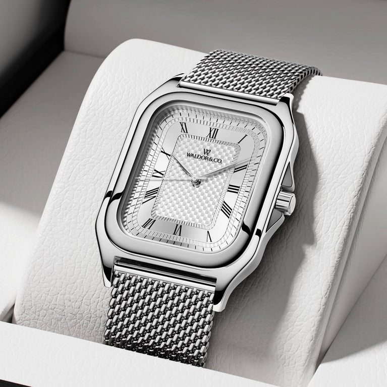 Dial material: Silver patterned dial in brass with silver details